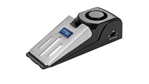 According to Bucknam, in addition to jamming the door, the elongated stopper also works to deter others from opening it. It has an easy on-and-off switch with three sensitivity levels: low, medium, and high. “Since you can turn it off, you don’t have to worry about it randomly going off,” Bucknam adds. Because of that, it can work as both a door alarm and a door wedge.
