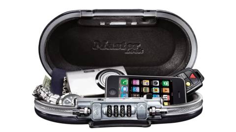 ttttttttttttttttIf you’re planning for a day at the beach, you can’t keep your phone safe by hiding it in your shoe. Consider purchasing the Master Lock portable lock box. This water-resistant item is ideal for protecting your belongings—such as your phone, credit cards, passport, and cash—wherever you go.