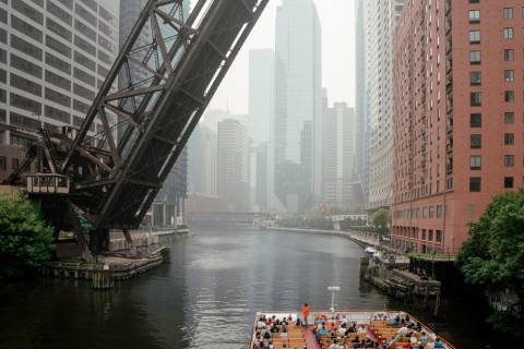 (Bloomberg) -- A mask-less Joe Biden landed in Chicago as the city grapples with a second day of thick Canadian smoke sending air quality to unhealthy levels across the eastern US and even sparking warnings in New York City. Chicago's Mayor Brandon Johnson on Tuesday urged residents and visitors alike to don masks for the duration of the air-quality alert as the thick smoke from Canadian wildfires seeps across the Great Lakes into the eastern and central US.