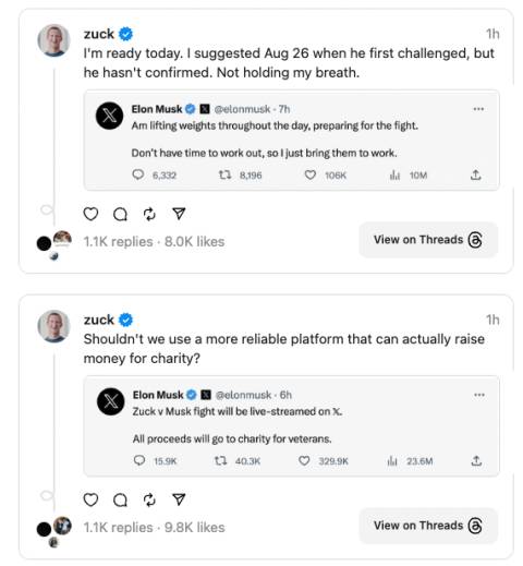 (Credit: Mark Zuckerberg/ Threads)TBD on whether the duo will actually make it to the ring.