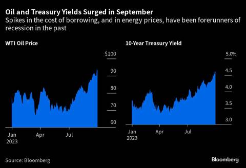 Here are six reasons why a recession remains Bloomberg Economics’ base case. They range from the wiring of the human brain and the mechanics of monetary policy, to strikes, higher oil prices and a looming credit squeeze — not to mention the end of Taylor Swift’s concert tour.