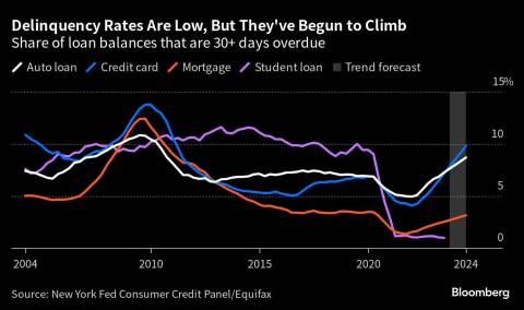 Revealing about the shape of things to come: Credit-card delinquency rates have surged, notably among younger Americans, and parts of the auto-loan market are turning bad too.