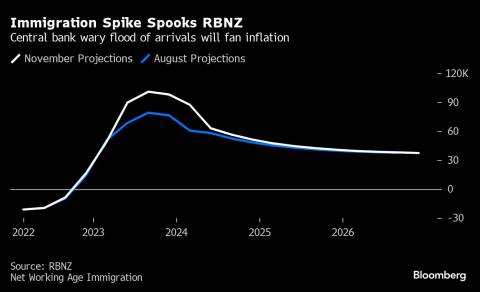 The RBNZ had initially viewed rising immigration as less of an inflation risk because it was alleviating a labor shortage and reducing upward pressure on wages. But Hawkesby said the spike has been bigger than expected and is now fueling demand.
