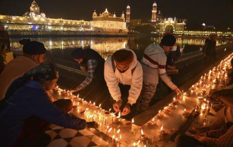 Sikhs lit candles to mark the birth anniversary of Guru Nanak, the founder of Sikhism, at the illuminated Golden Temple, in Amritsar, India. A pro-democracy activist known as Grandma Wong protested outside a Hong Kong court hearing the trial of 47 pro-democracy figures. Figure skaters competed during the ISU Grand Prix of Figure Skating in Kadoma, Japan. Buddhists made kimchi in Seoul, South Korea, to be donated to people who need it during the winter. Ambulances in Silkyara, India, carry rescued construction workers away from the collapsed tunnel where they were trapped for several days.