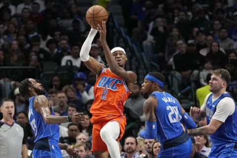 The Thunder’s final rally began with a traveling call against Luka Doncic, who recorded his 59th career regular-season triple-double with 36 points, 18 assists and 15 assists in a season-high 46 minutes. A dunk by Chet Holmgren tied the score, and Williams put the Thunder ahead for good with a reverse drive with 40 seconds left.