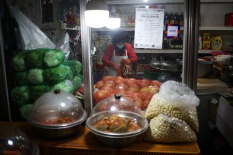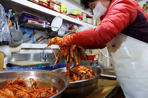 I can't ask restaurants to give more kimchi these days and it's too expensive to make my own at home due to high-priced vegetables...so I came here to buy it, she said.