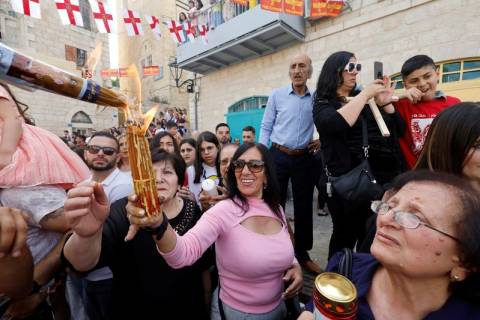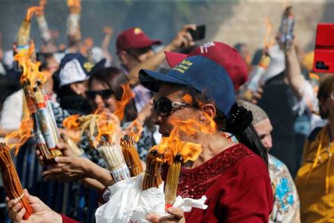 JERUSALEM (Reuters) - With processions, chants and ululations, thousands of Christian Palestinians and pilgrims celebrated the Holy Fire ceremony at Jerusalem's Church of the Holy Sepulchre on Saturday, the first to be held since Israel imposed new restrictions on attendance.