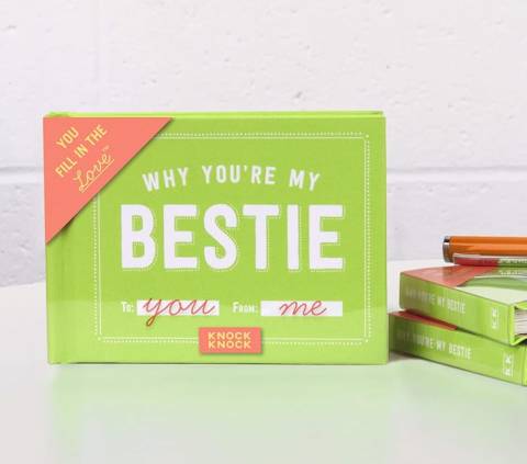 There are many ways to say, “I love you,” but what about customizing the experience with a memory book just for best friends? The Why You're My Bestie fill-in-the-blank book has 112 pages of prompts like, “When we’re old, let’s ___,” all ready for you to complete in honor of your friend.