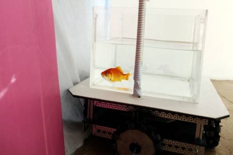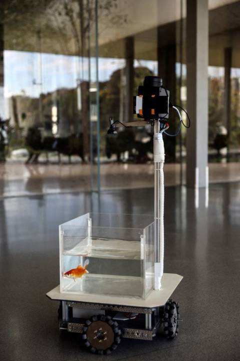 The team at Ben-Gurion University developed an FOV - a fish-operated vehicle. The robotic car is fitted with lidar, a remote sensing technology that uses pulsed laser light to collect data on the vehicle's ground location and the fish's whereabouts inside a mounted water tank.