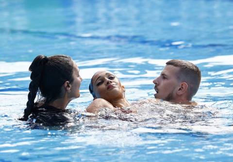 Spaniard Fuentes, a four-time Olympic medallist in synchronised swimming, jumped into the pool after she saw Alvarez sink to the bottom at the end of her solo free final routine.