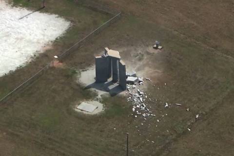 Aerial footage posted online by South Carolina-based WHNS-TV show one of the structure's five monoliths crumbled into jagged pieces strewn about the ground, and a chunk of the monument's roof broken off at one corner. A large number of investigators and their vehicles were visible at the scene, about 100 miles (160.93 km) east of Georgia's capital.