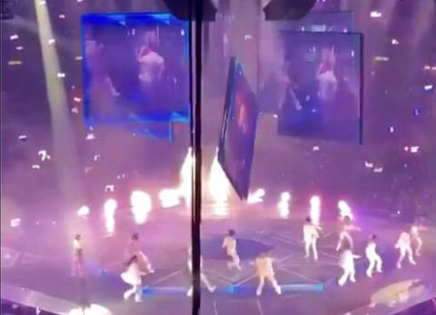 The falling screen appeared to directly hit one dancer on the head and body before toppling onto another performer as the audience screamed in horror. The rest of the performers on stage rushed to help those hit by the screen, the videos showed.