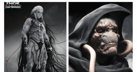 The concept image unmistakably depicts the Gorr that fans of comic books may have been hoping to see in the movie. This concept picture demonstrates how much scarier Gorr may have been, even if his appearance and acting in the film were horrifying and were compared to Elizabeth Olsen's horror-tinted portrayal of the evil Scarlet Witch in 'Doctor Strange in the Multiverse of Madness.' Briclot explains some of the reasons for the character's appearance variations from the comics in his caption. Gorr's nudity was a hurdle and attempts to flatten his nose to slits resulted in an unattractive resemblance to Voldemort from the Harry Potter series.