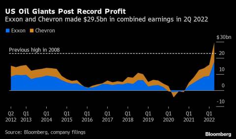 The titans of North American oil followed European peers Shell Plc and TotalEnergies SE in posting unprecedented second-quarter results four months after Russia’s invasion of Ukraine threw worldwide commodity markets into disarray, aggravating already rampant inflation.