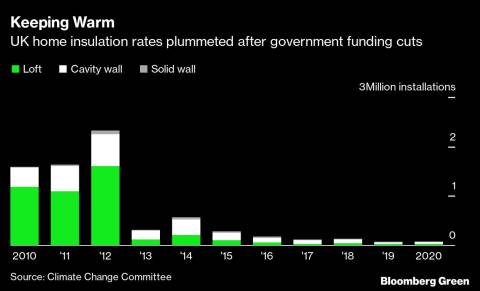(Bloomberg) -- The UK government won’t be able to insulate as many homes as planned before winter after it scaled back a £1 billion ($1.2 billion) boost to its flagship scheme to help some of the country’s poorest households curb their energy use.