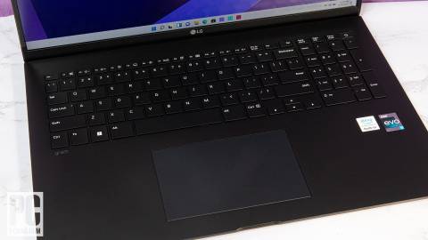 The large footprint of the 17-inch Gram means that there’s plenty of room for a full-size keyboard and numeric pad. It’s the same keyboard used in the 2021 model, which offered comfortable typing thanks to decent vertical travel and sturdy switches for each key, along with nice, easy-to-read lettering. The keyboard also has a power button with an integrated fingerprint reader, so you can log in securely without the hassle of a PIN or a password.