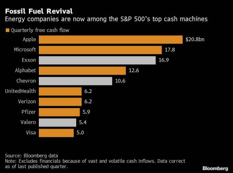 Exxon, which lost money for the first time in its history during the pandemic, now ranks as the S&P 500 Index’s third-largest generator of free cash flow, behind only Apple Inc. and Microsoft Corp, according to data compiled by Bloomberg.