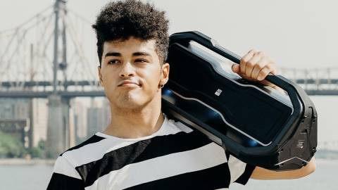 You can even pair multiple devices using multi-speaker pairing mode. It’s a lot like having a DJ you can carry around, only this DJ has a 12-hour battery life and a wireless range of 100 feet. Pair your phone via Bluetooth or the NFC connection point and start playing some tunes. If you get a call, you can even answer or ignore it from the speaker controls.