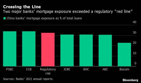 As authorities move to keep risks in check, lenders with high exposure could come under greater scrutiny. Mortgages accounted for about 34% of total loans at Postal Savings Bank of China Co. and China Construction Bank Corp. at the end of 2021, above a regulatory cap of 32.5% for the biggest banks.