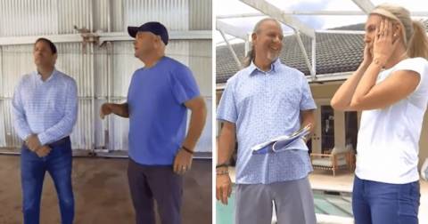 Sarah, on the other hand, is working with Greg, a landscape architect with whom she previously worked on the hotel, and they have sweet-talked him into assisting them with their current project as well. He suggests framing the entire arrival space with more palm trees and bringing in more plants. Sarah shares how she doesn't want people's first impression to be that they have built an enormous box (referring to the hangar) on the side of the house. She adds that she really wishes to focus on the area by the pool by incorporating amazing hardscaping. She desperately wants a fire pit or some sort of fire feature. Likewise, she admits in a confessional that she has high expectations for the landscaping.
