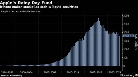 The iPhone maker’s cash and cash equivalents stockpile sits at nearly $180 billion, while it has paid out around $14 billion dividends each of the last three years.