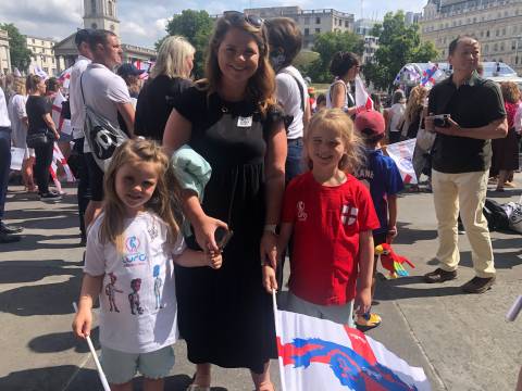 Earlier, before the players took to the stage, people gathered at a sun-drenched Trafalgar Square. Sharon Langdon-Bailey, 43, brought her six-year-old daughter, Holly, with her. The illustrator, originally from Liverpool but who lives in Essex, told The Independent: “I think we’re very excited to see women in football being exceptional… This is just to show my little girl that whatever she dreams is possible.”