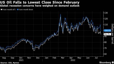 Crude has opened August on a weak footing after declining for the prior two months on concerns that a global slowdown will eat into fuel demand. The drop has eroded all of the gains made since Moscow’s invasion of Ukraine in late February even as Washington and the European Union imposed a raft of sanctions on Russian energy exports.