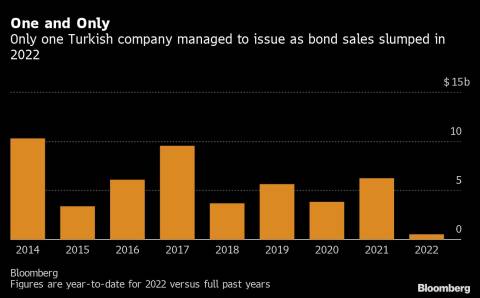 Turkey has this year seen only one sale in international debt markets after Coca Cola Co.’s bottler unit sold bonds in January. That compares to 14 corporate deals for all of 2021, according to data compiled by Bloomberg.