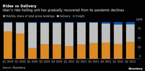 (Bloomberg) -- Uber Technologies Inc. reported revenue that beat analysts’ estimates, boosted by resilient demand from customers who continued to hail rides and order takeout food despite rising inflation. Shares jumped about 14% in early trading.