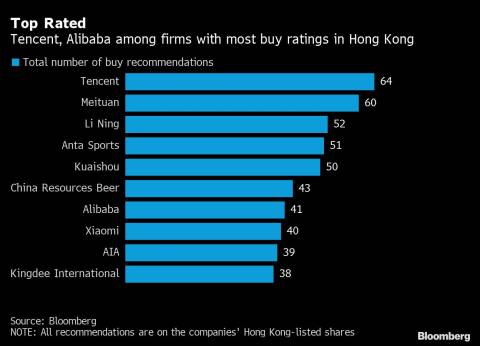 For now, the majority of analysts are still sticking to their bullishness. Tencent has the most buy recommendations of any Asian company, while Alibaba and delivery giant Meituan are also near the top of the list, according to data compiled by Bloomberg. Analysts are expecting the three stocks to rise at least 38% in the next 12 months.