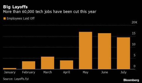 Technology companies have cut more than 60,000 jobs this year, according to Layoffs.fyi, which tracks both publicly traded and closely held businesses. On Monday, Oracle Corp. laid off employees in marketing and its US customer experience division, though the extent of the cuts couldn’t immediately be determined. Barclays Plc analyst Raimo Lenschow said “management is taking a proactive approach” as economic headwinds hit the software giant. The stock has fallen 11% this year, compared to the Nasdaq 100’s 21% dip.