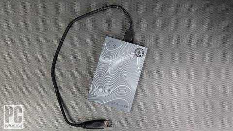 At the drive's other end is an RGB lighting strip that glows when the device is plugged in. I've seen the strip pulse blue and orange, and you can customize the lighting using the free Seagate Toolkit software.