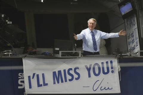 LOS ANGELES (AP) — Hall of Fame broadcaster Vin Scully, whose dulcet tones provided the soundtrack of summer while entertaining and informing Dodgers fans in Brooklyn and Los Angeles for 67 years, died Tuesday night, the team said. He was 94.