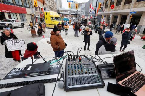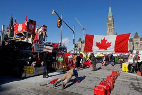 Hundreds of vehicles, including trucks, have lined a roughly one-mile stretch of the Canadian capital since Jan. 28, turning the picturesque avenue that runs in front of the Gothic-style Parliament complex and Supreme Court into a temporary home for the self-titled Freedom Convoy.