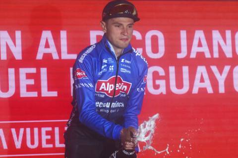 BILBAO, Spain (AP) — Remco Evenepoel took the leader’s red jersey on a wet and cold day at the Spanish Vuelta on Thursday, while Jay Wine overcame a flat tire to win the sixth stage and defending champion Primoz Roglic moved closer to the top.