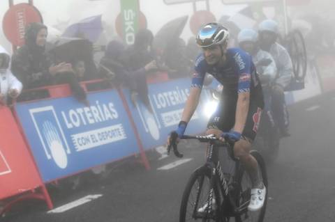 A sustained acceleration from Evenepoel on the foggy slopes of Pico Jano, dropped Simon Yates, Richard Carapaz and Primoz Roglic, but, with visibility limited to a few metres on the summit, he could not quite close the gap on Vine, who held on to win by 15sec.