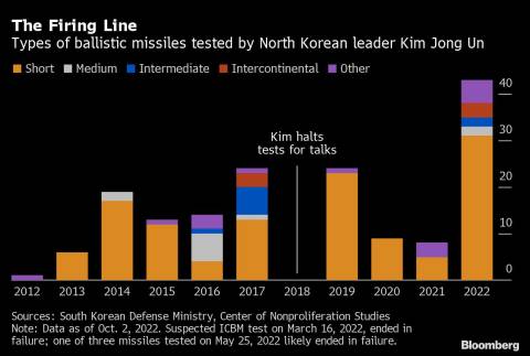 The tensions will likely add to global anxiety over nuclear saber-rattling as Russian President Vladimir Putin alludes to his atomic arsenal while attempting to bolster his struggling invasion of Ukraine. The US’s push to isolate Russia over the war -- coupled with increasing tensions between Washington and Beijing -- has allowed Kim to strengthen his nuclear deterrent without fear of new UN sanctions.