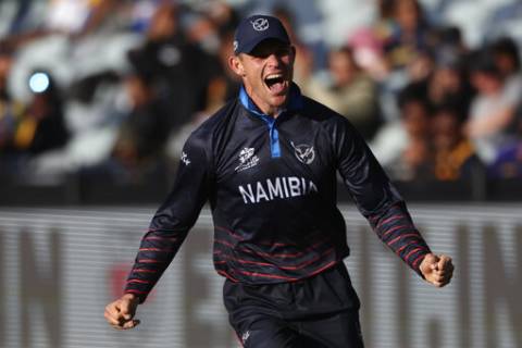 After Jan Frylinck and J.J. Smit’s seventh-wicket heroics batted them back into the match, Namibia defended its 163-7 with great bowling and fielding to dismiss Sri Lanka for 108 runs from 19 overs.