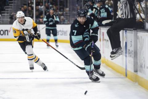 Seattle scored four times in the second period, only to see two of the goals waved off after successful challenges by Pittsburgh. Ryan Donato’s goal at 8:09 was disallowed after it was determined he was offside on the play and entered the zone ahead of Eberle, who had the puck. Three minutes later, Andre Burakovsky slammed a rebound past DeSmith, but Pittsburgh’s challenge was successful again and it was determined the play should have been whistled for a stoppage before the goal due to a high stick.