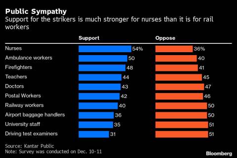 The rail strikes are opposed by half of Britons, according to polling data from Kantar. Train workers enjoy less public support than other workers, with most sympathy directed toward nurses, ambulance staff and firefighters.