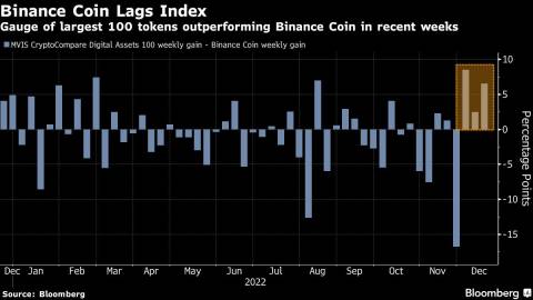 Binance Coin, the native token of Zhao’s ecosystem, could be viewed as an arbiter of investor sentiment toward the exchange. Over multi-year periods it’s significantly outperformed a gauge of the largest 100 tokens. But it’s down about 4% so far this week, even as the wider gauge has added roughly 2%, according to data compiled by Bloomberg.