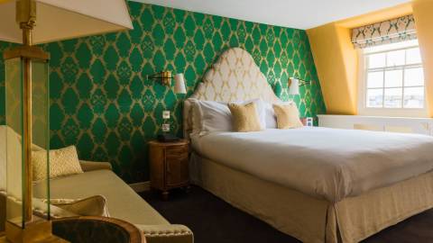 Quintessential Bath meets Marie Kondo’s worst nightmare. From the chandelier made of single lost earrings to Natwest pigs, kaleidoscopes and larders bursting with sweets, fizzy drinks and ice cream, No. 15 is perfect for those who baulk at identikit minimalism. Made up of three Grade I townhouses, the 37-room hotel is laden with unexpected visual treats, such as the fragments of Georgian wallpaper visible in Bar 15. Special night? Book the Hideout Suite, which has its own hot tub, dressing room and​ Sonos system.