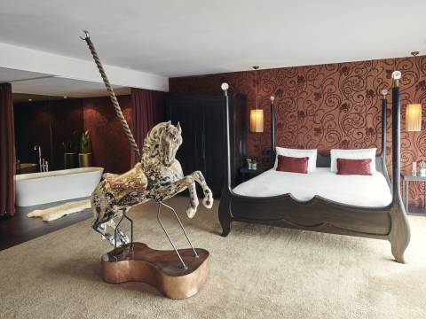 All of the 12 updated and themed bedrooms across this attractive Georgian townhouse are the stuff of fantasy, featuring oodles of richly coloured velvets, mirrored wallpaper, and a flash of the Jazz Age in furniture and fittings, alongside sumptuous beds and gilded mirrors. If we really had to choose, though, we’d recommend the vibrant Pommery Room or the opulent Art Deco-styled Legacia Room. Vintage glamour at its finest.