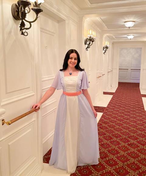 Recently, Lucero wore the necklace to stage her own version of Titanic inside an exhibition in Los Angeles. Walking through the art deco halls seen in the movie, Lucero wore a replica of the pink dress Rose is sporting as the ship sinks, which she bought for the occasion, along with her model of the Heart of the Ocean. “I remember being on cloud nine seeing the set in person,” she says. “I love how the pictures turned out.”