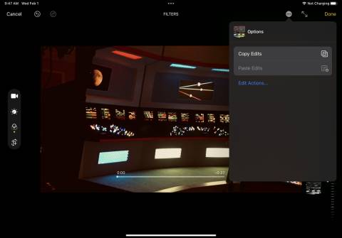 To apply the attribute and filter changes from one video to another, tap the three-dot icon for the first video and select Copy Edits. Open the second video, tap the three-dot icon, and select Paste Edits.