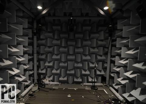 Qualcomm's acoustic anechoic chamber is designed to enable complete silenceAcoustic anechoic chambers are more than soundproof rooms; they’re effectively anti-sound rooms. They’re designed to enable complete silence by not only blocking all outside noise entirely but also by preventing any sort of sound reflection within the space itself. The largest of the lab’s chambers, a nine-ton box that multiple people can stand in, is mounted on vibration-dampening isolators and uses huge wedge-shaped foam sections installed on most surfaces to absorb most sound frequencies down to about 160Hz.