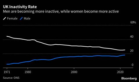 The figures suggest that executives are counting on more women entering the workforce, reflecting official figures that show they’ve joining the labor market at a faster rate than men. Economic inactivity levels — those out of work and not looking for a job — have climbed for men and declined for female workers.