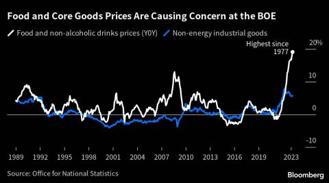 Britons are struggling with the fastest food price inflation since the 1970s, and the Bank of England on Thursday said it’s displaced energy as the biggest cause of inflationary concern. Healthy diets are getting out of reach for more Britons while shortages of items from eggs to salad ingredients in recent months have shone light on how food is sourced, raising questions over whether farmers are compensated enough for their produce.