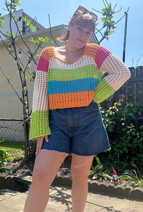 “I love high-waisted denim cut-offs, and these Frame shorts are likely gonna become my summer go-to for quick and casual outfits. I like that they don’t cling to my thighs thanks to the flattering cut. I’m also a fan of the retro details like this classic true blue Eckhart shade, the pe-distressed fading, and raw hem. As someone who constantly struggles with sizing, I will say that this size guide wasn’t the most accurate for me. While my measurements pointed me to a size 33, the shorts were quite large and loose (and not in a cute, trendy way), so I think going down two sizes would give me the perfect fit, especially around my waist so I can wear them sans a belt.” — Victoria Montalti, Associate Affiliate Writer